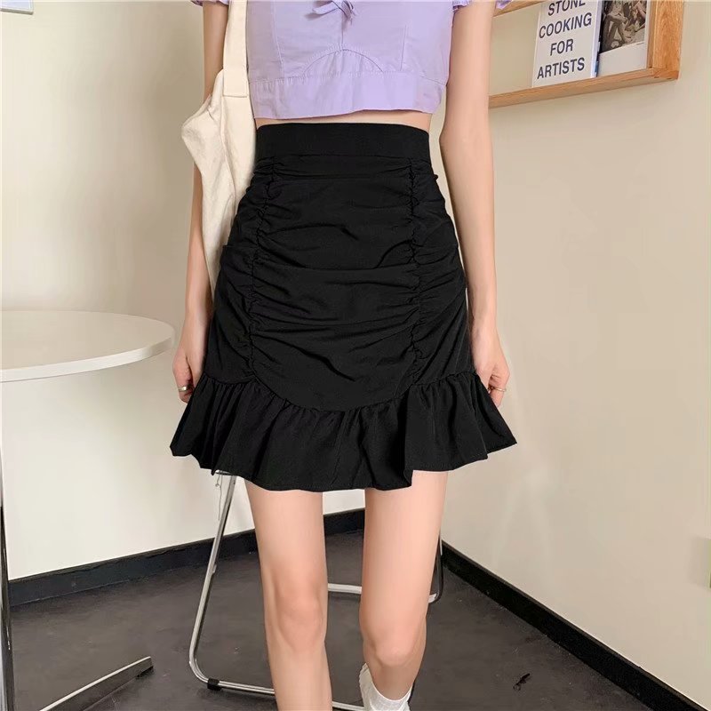 | nameOriginal | College Style Black Skirt Women's Autumn and Summer Niche A- line Skirt 2024 New Large Size Skirt High Waist Pleated Skirt |
