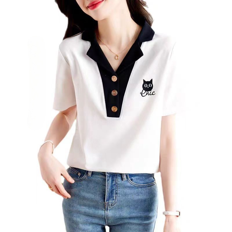 | nameOriginal | College Style Cat Short Sleeve Fashion T2024 Summer Wear Retro Age-reducing Design Sense |