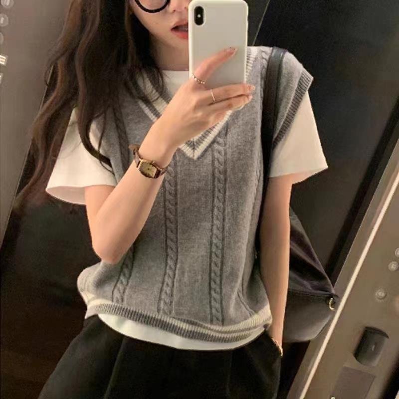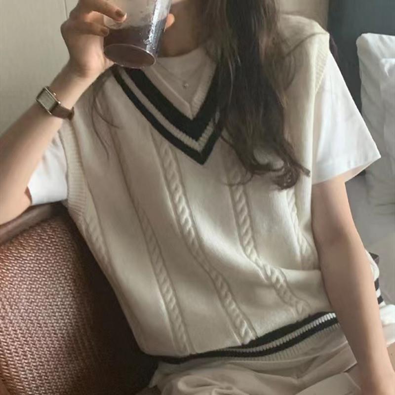 | nameOriginal | College Style Contrast Color V-neck Knitted Vest Women's Autumn New Design Sense Sleeveless Sweater Vest Top |