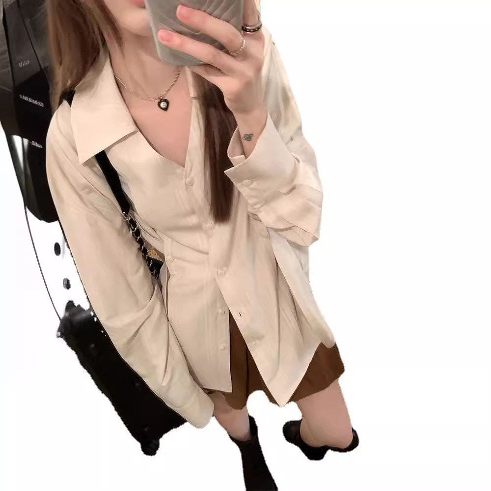 College Style Dark Texture Tight Waist Shirt Women’s 2024 Early Autumn New Design Niche Unique Chic Top