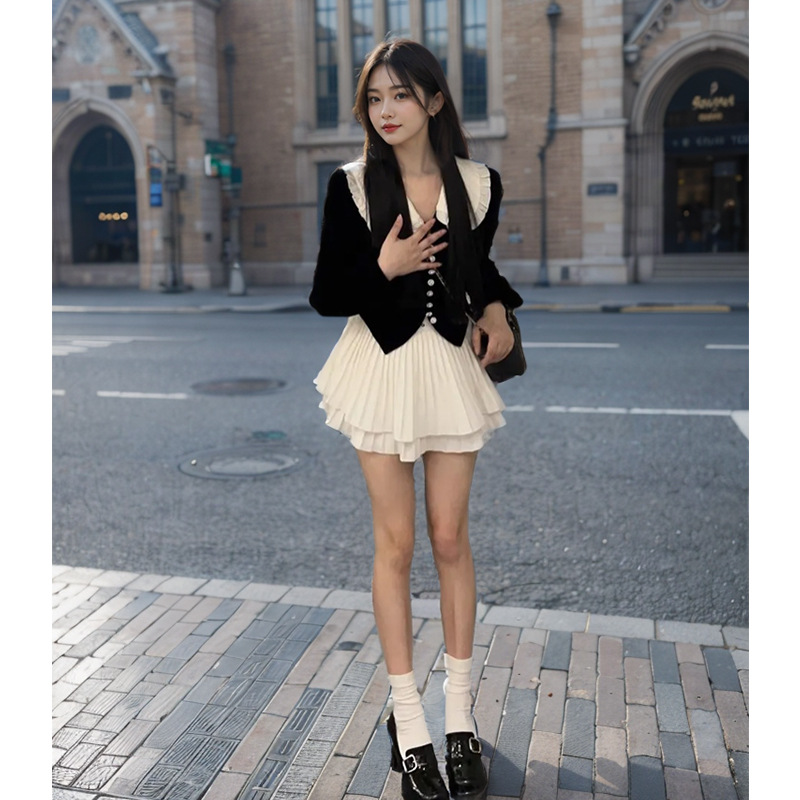 | nameOriginal | College Style Doll Collar Lace Stitching Top Cake Skirt Two-piece Set Women's Autumn Small Pure Desire Age-reducing Set |