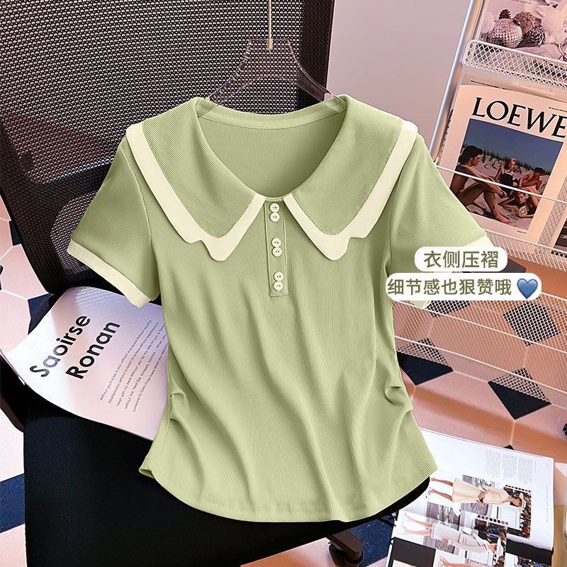 | nameOriginal | College Style Doll Collar Short-Sleeve Shirt Women's Summer Wear 2024 Summer New Sweet Age-Reducing All-Match T-Shirt Top |