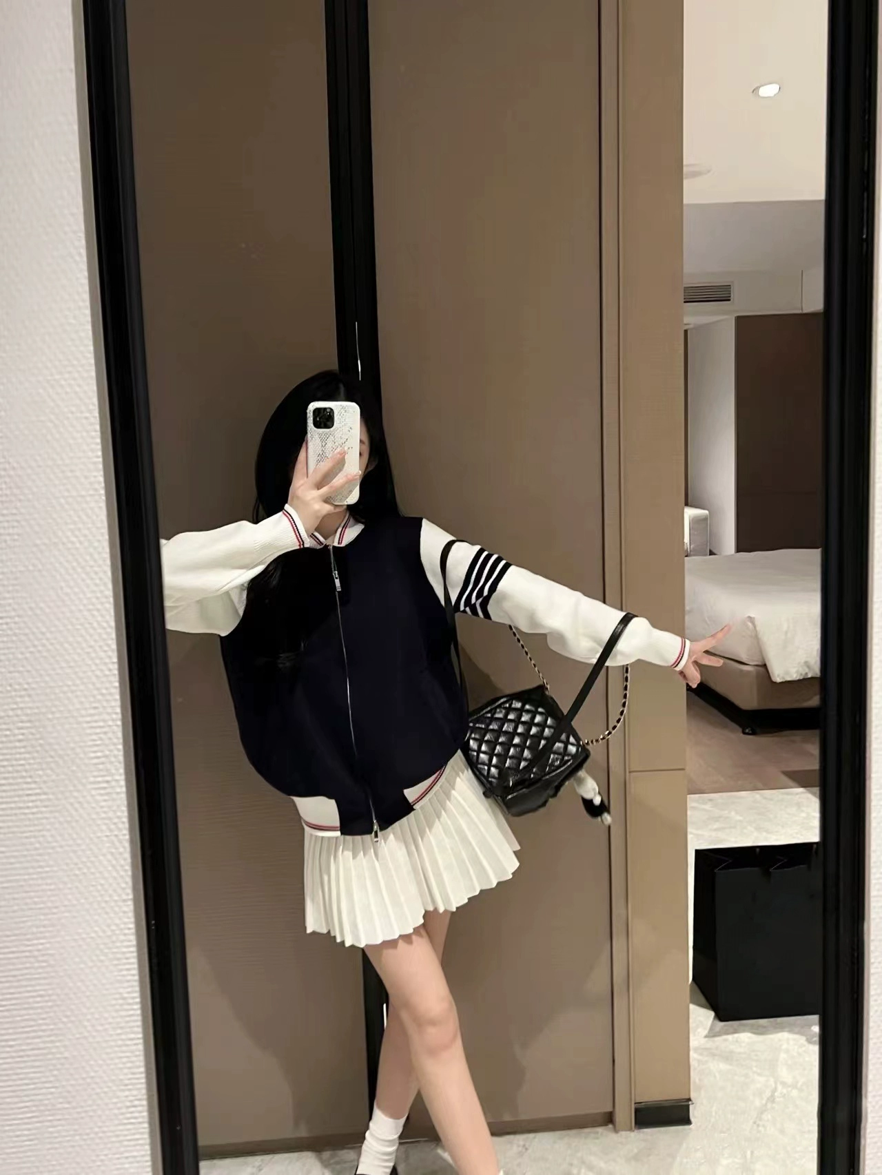 | nameOriginal | College style four-stripe knitted jacket cardigan baseball uniform |