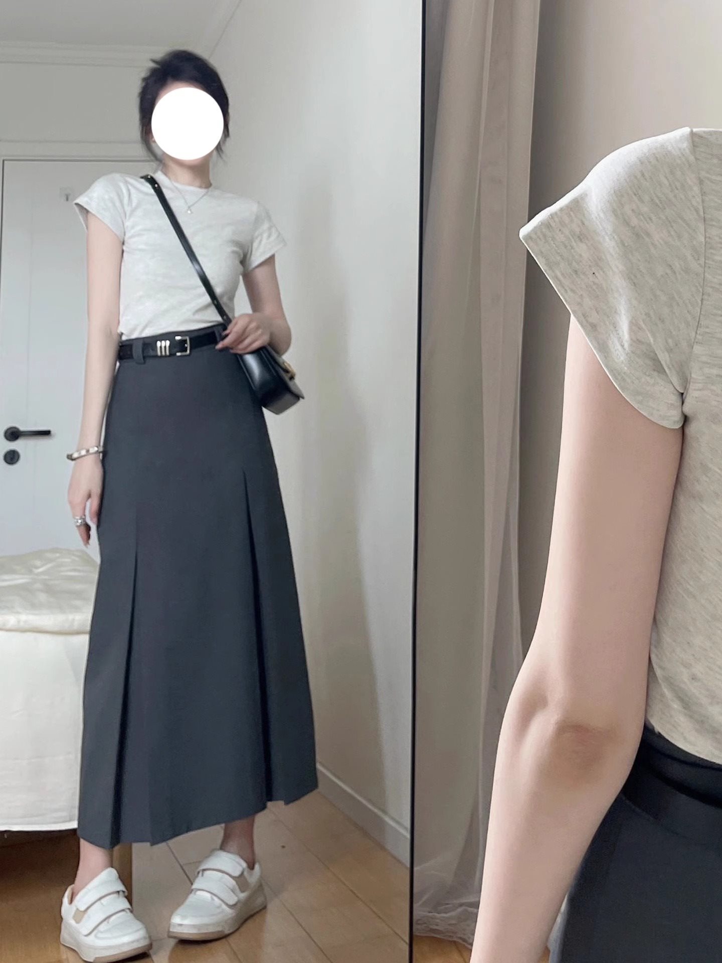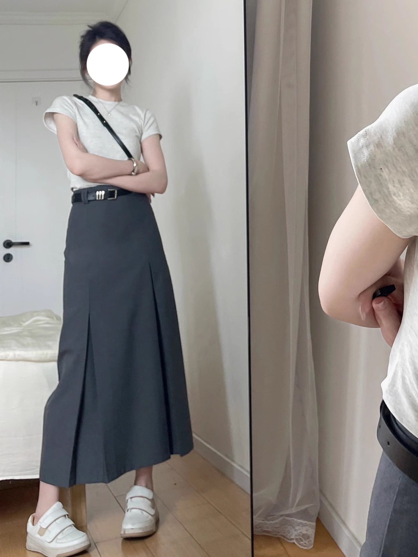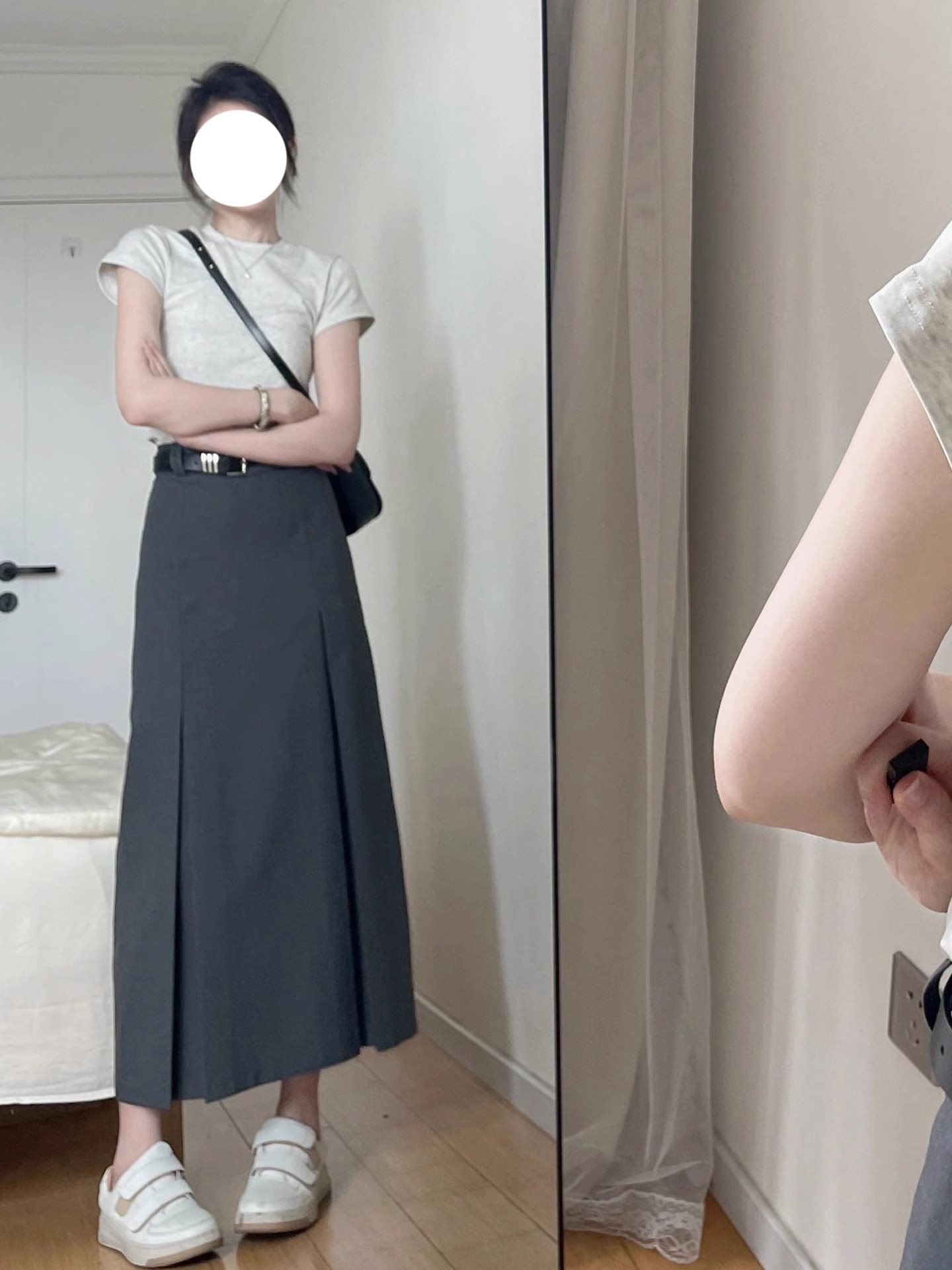 | nameOriginal | College Style Grey Suit Pleated Skirt Women's plus size chubby girl Early Spring High Waist Hip Covering Slim A- line Long Skirt |