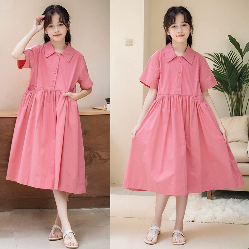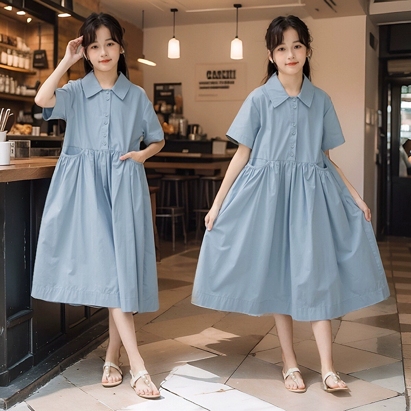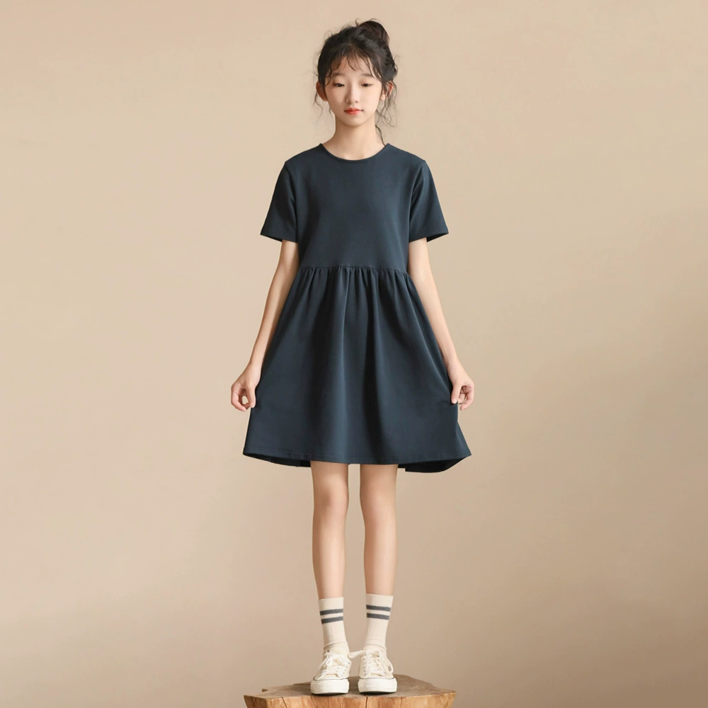 | nameOriginal | College style junior high school girl short-sleeved dress summer pure cotton loose and slim children's elementary school student dress for middle and large children |