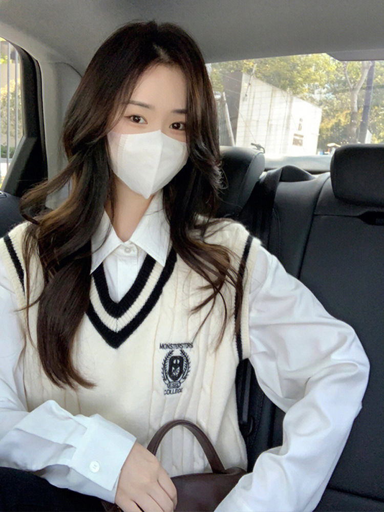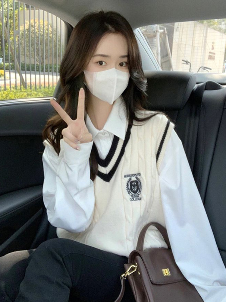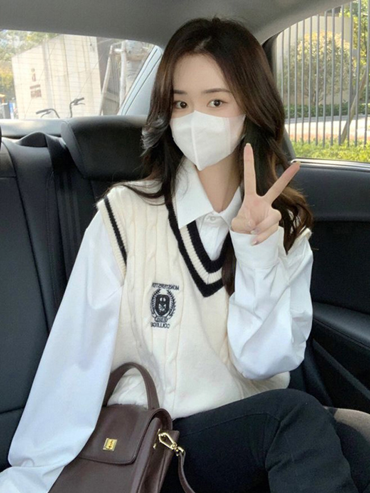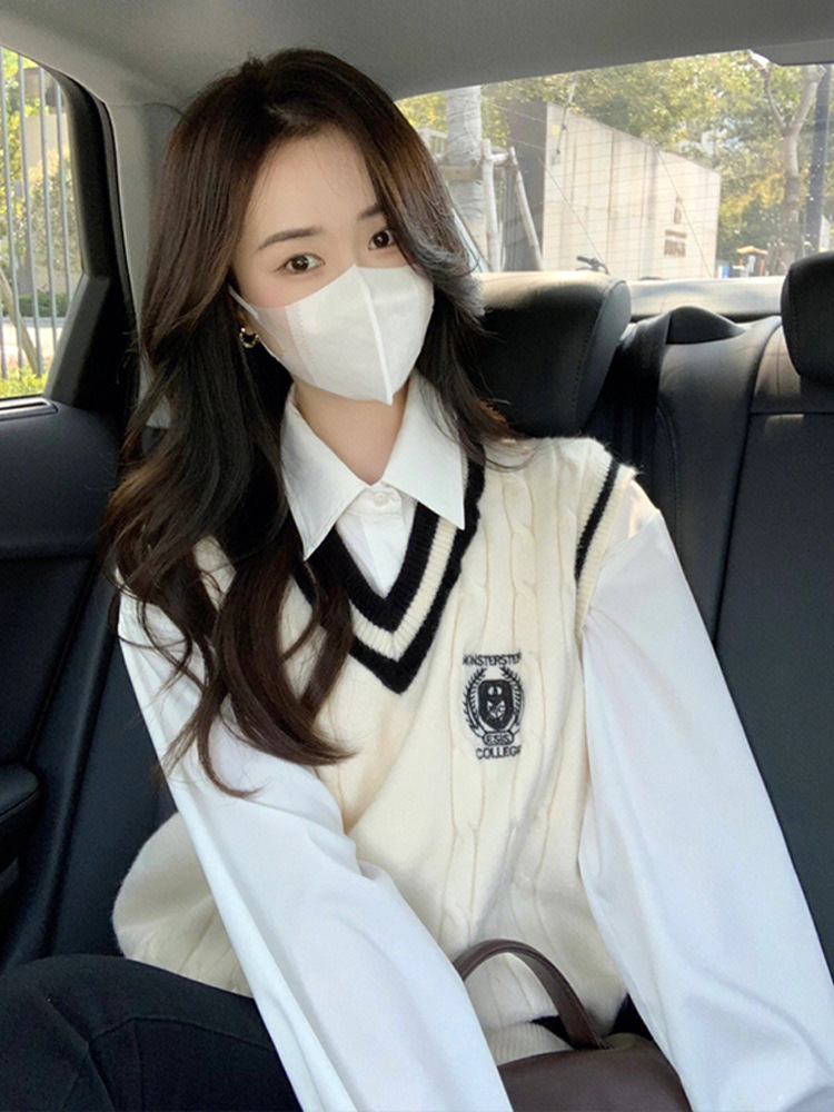 College Style Knitted Vest Women’s Spring 2024 New High-end Sense Overlap Sleeveless Top Trendy Instagram Style