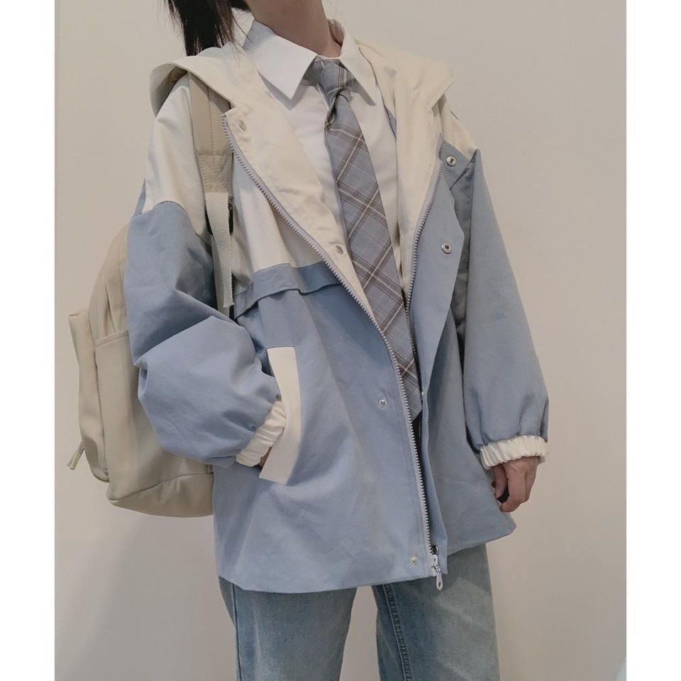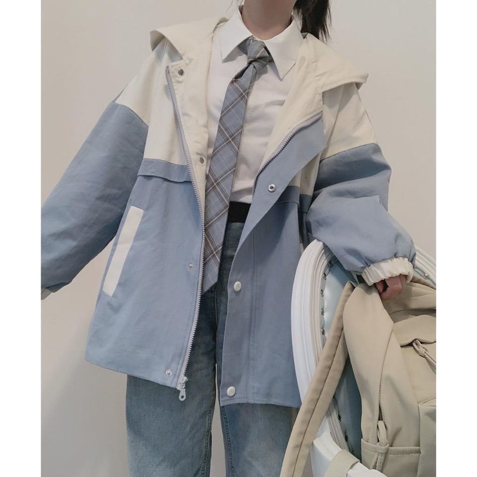 | nameOriginal | College-style Korean-style Color-block Jacket All-match Salt Style Tooling Female Student Loose Casual Retro Hong Kong Style Jacket |