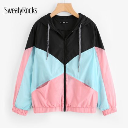 | nameOriginal | College style loose color matching sunscreen clothes women's women's sports leisure students thin coat spot a generation |