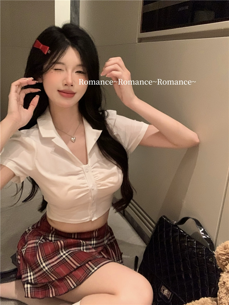 | nameOriginal | College Style Sexy Retro High Waist Two Piece Short Sleeve Set |