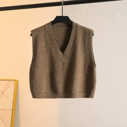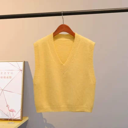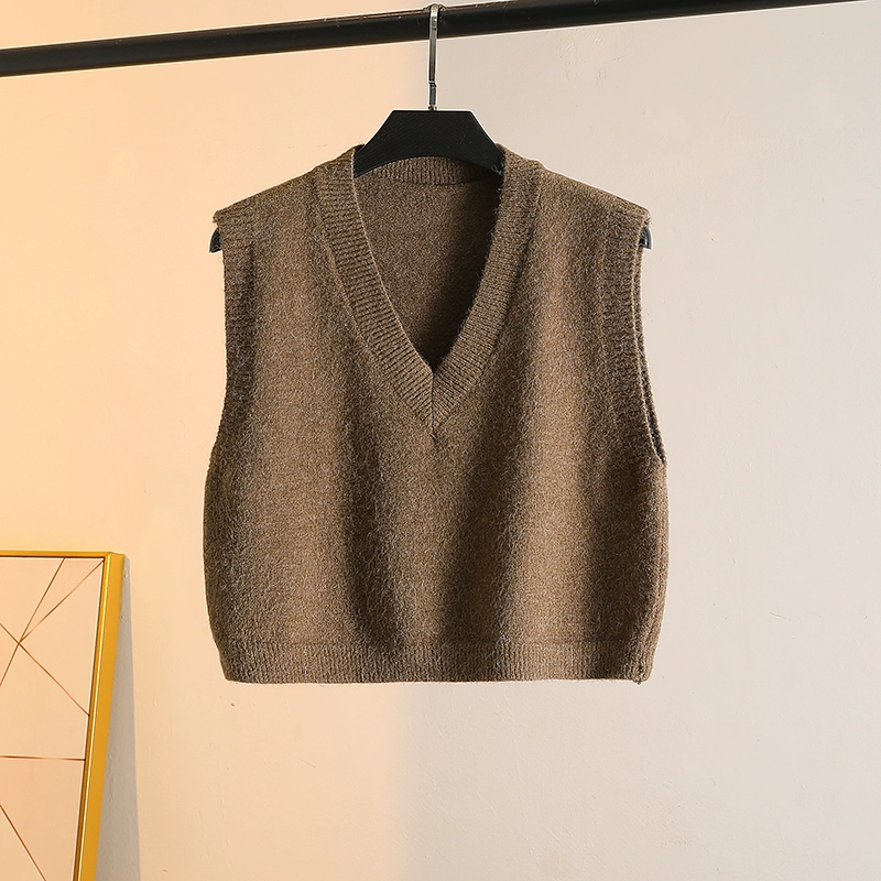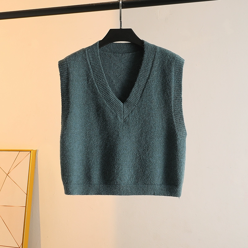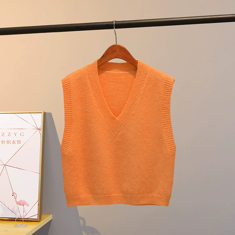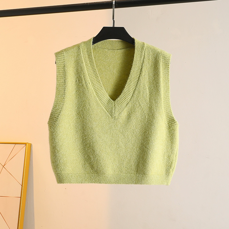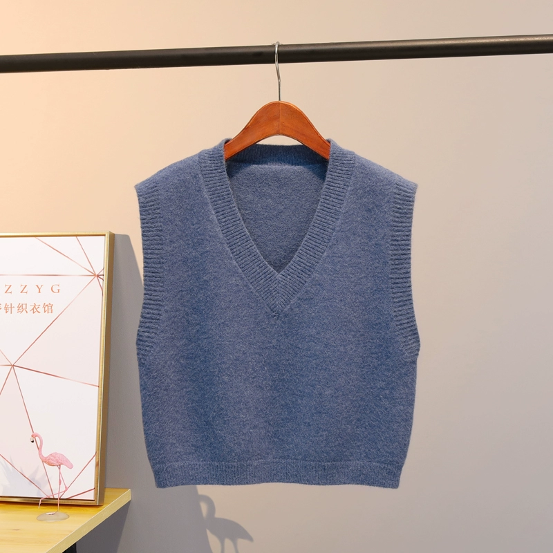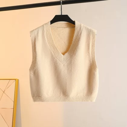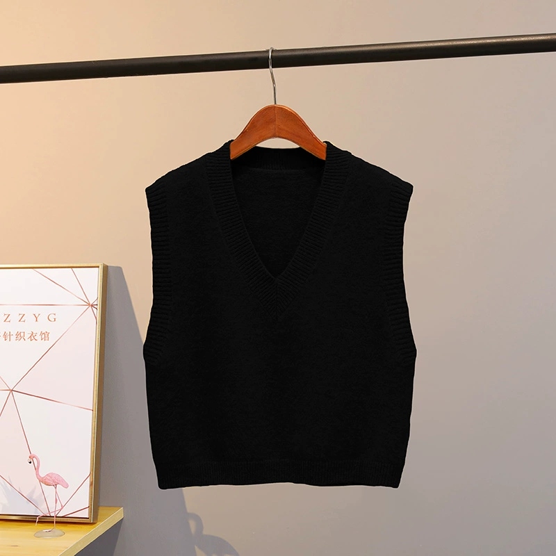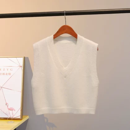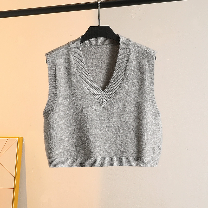| nameOriginal | College style short v-neck stacked knitted cotton vest |