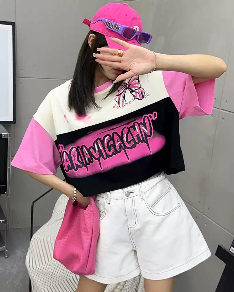 | nameOriginal | College style small contrasting color stitching short t-shirt for women 2024 summer thin half-sleeved women's round neck fat mm T-shirt for women |