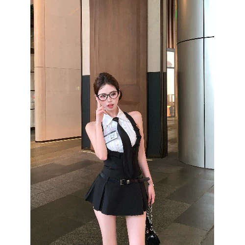 | nameOriginal | College style suit sleeveless shirt A-line suspender skirt |