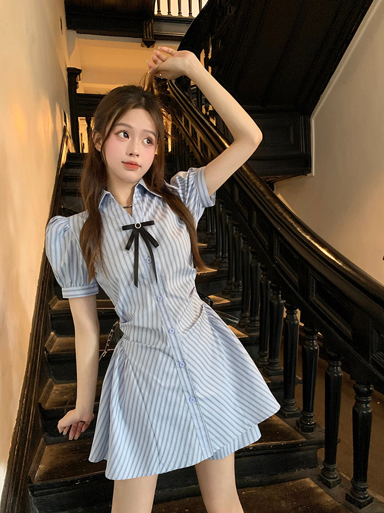 | nameOriginal | College Style suit Tight Waist Slimming Skirt Striped Shirt dress Women's Summer High Waist Shorts Fashionable Two-piece Set |