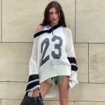 | nameOriginal | College style V-neck long sky hottie loose knitted sweater |