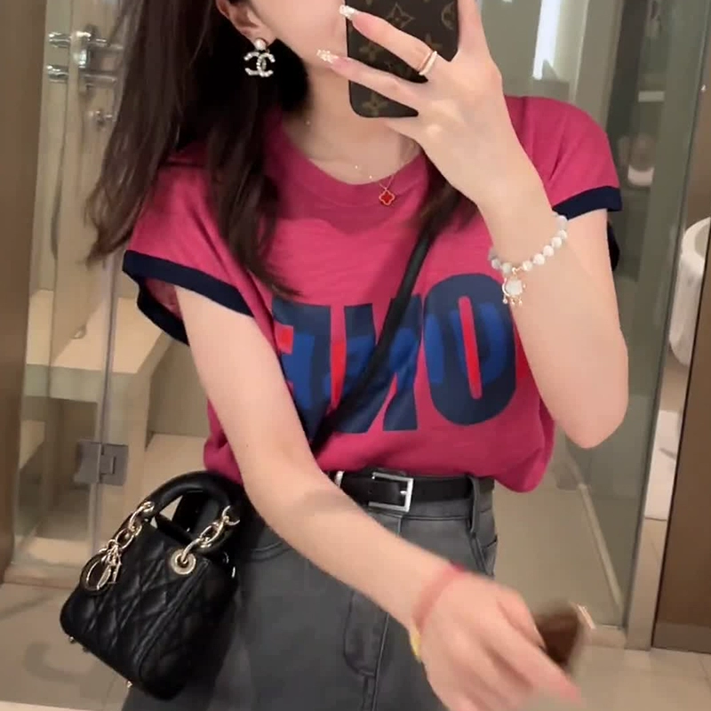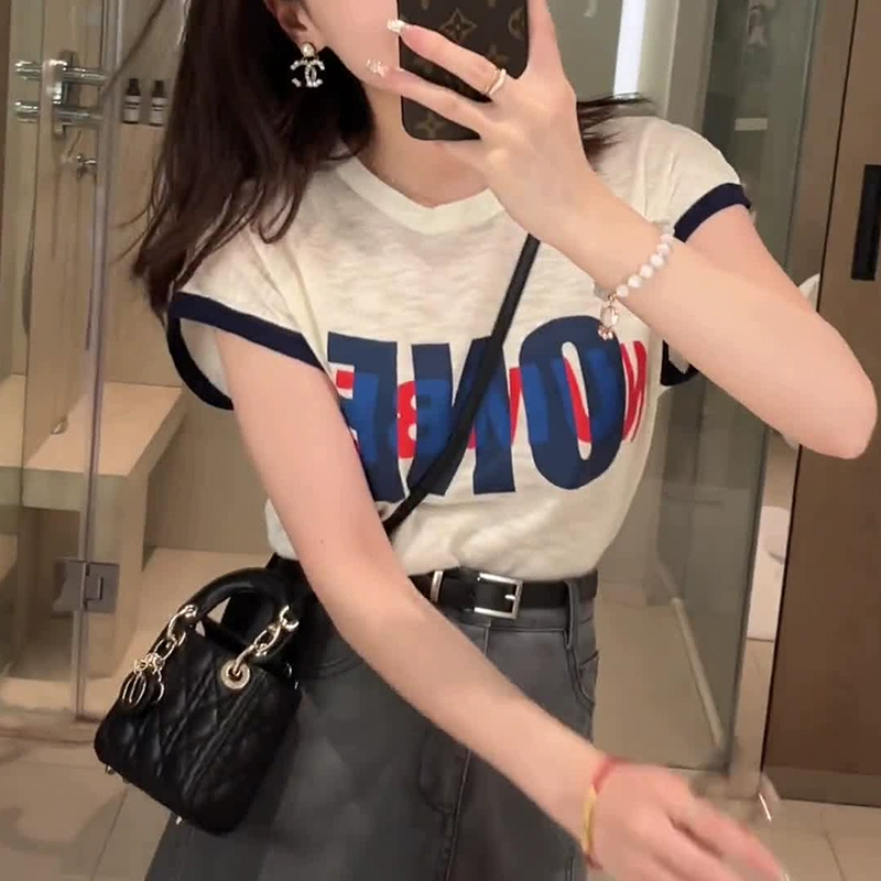 | nameOriginal | Color block ice silk stylish thin top with short sleeves |
