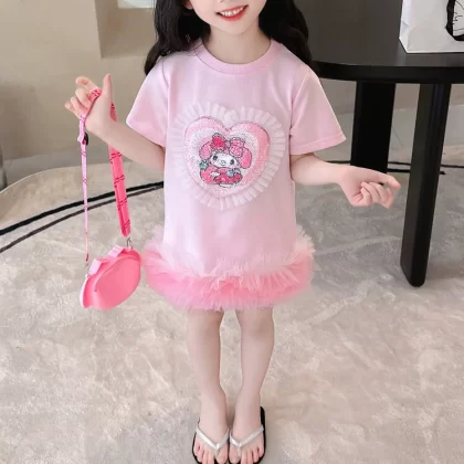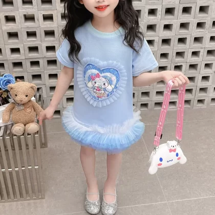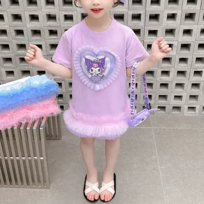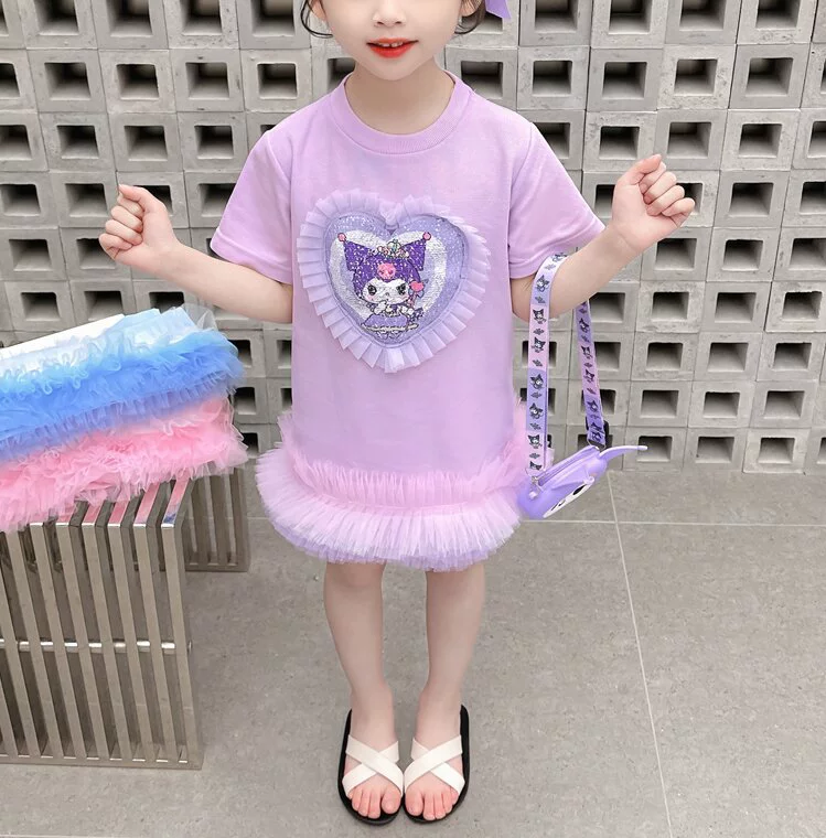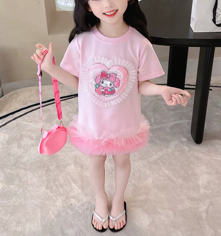 Color-changing girls sequins sweet short-sleeved T-shirt dress