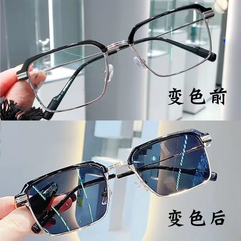 | nameOriginal | Color-changing myopia glasses fashionable half-frame retro men's fashion square face-looking small professional UV protection goggles |