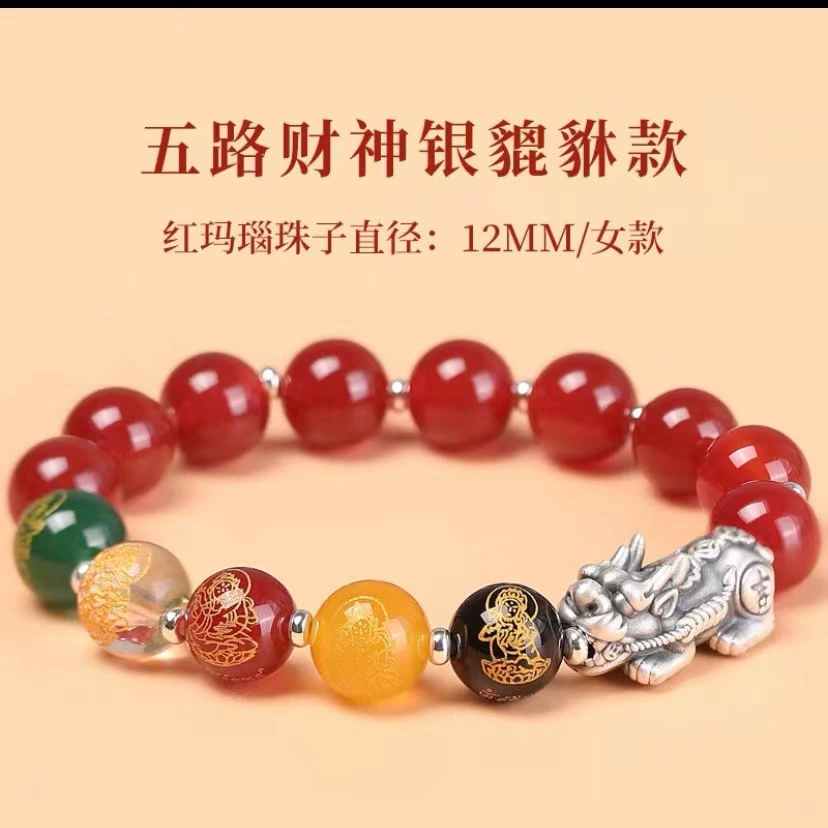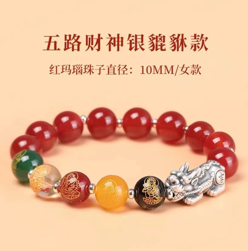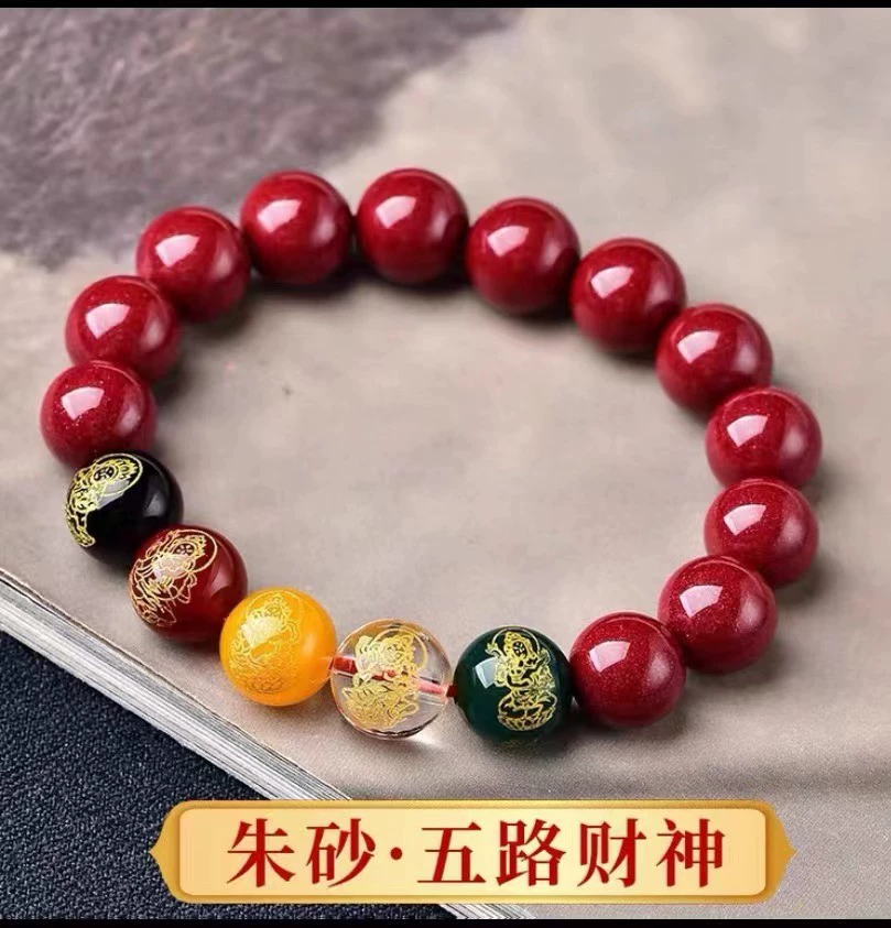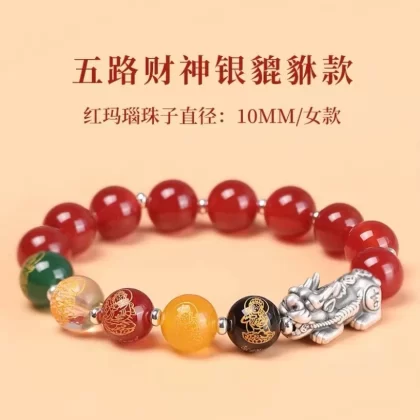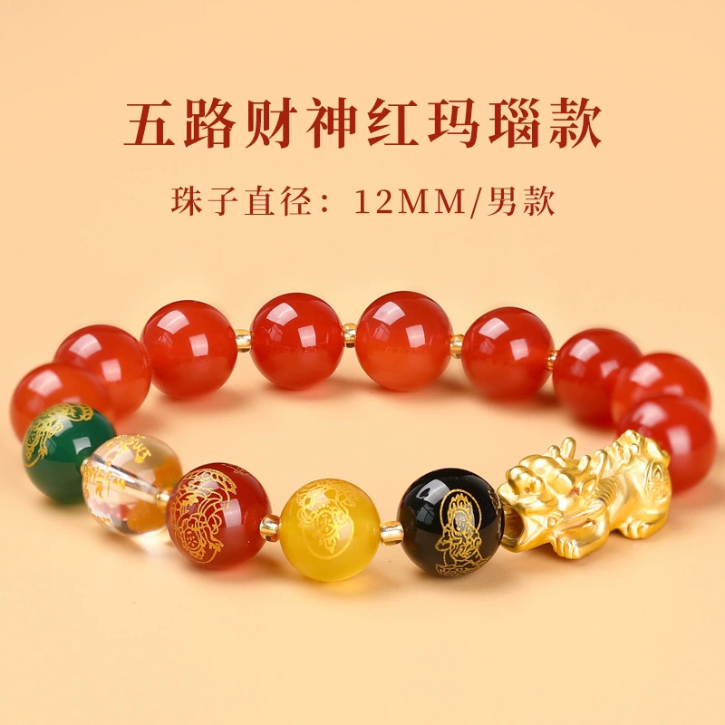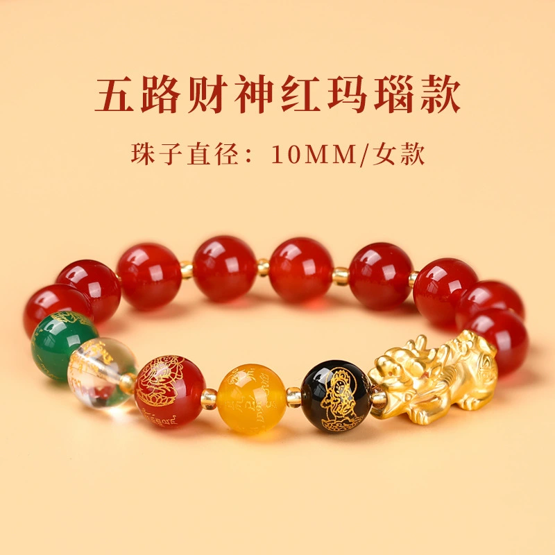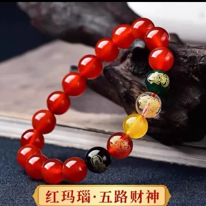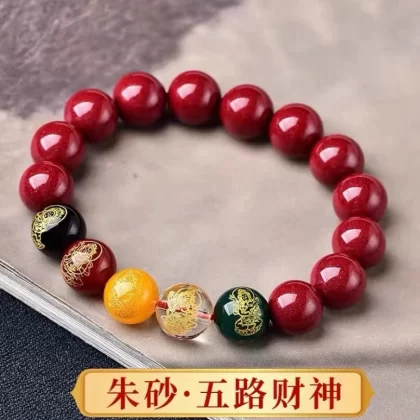 Change color red agate five road wealth god cinnabar bracelet