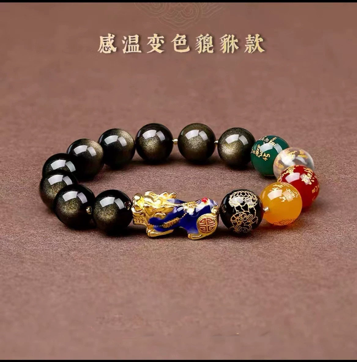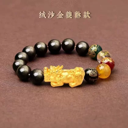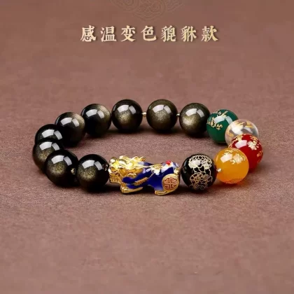 Color Changing Red Agate Five-Way God of Wealth Cinnabar Pixiu Bracelet