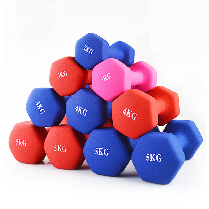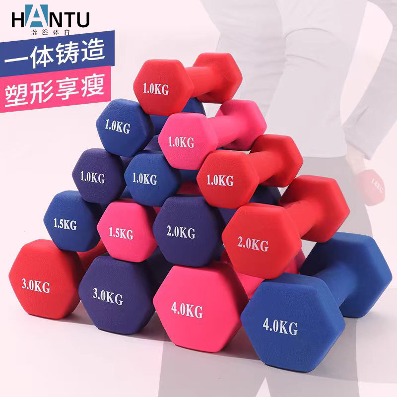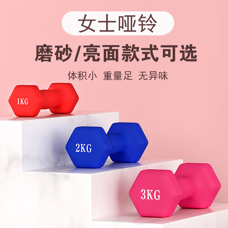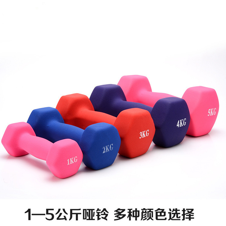 Color dip plastic dumbbell women's children's men's sports hexagonal dumbbell factory direct portable sports fitness equipment