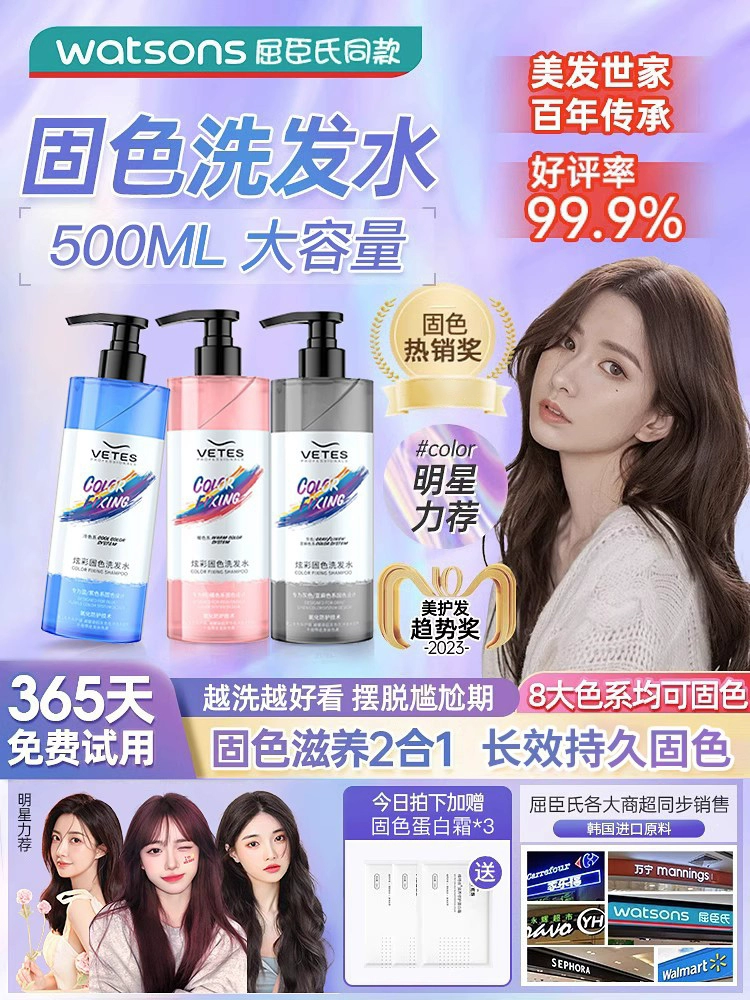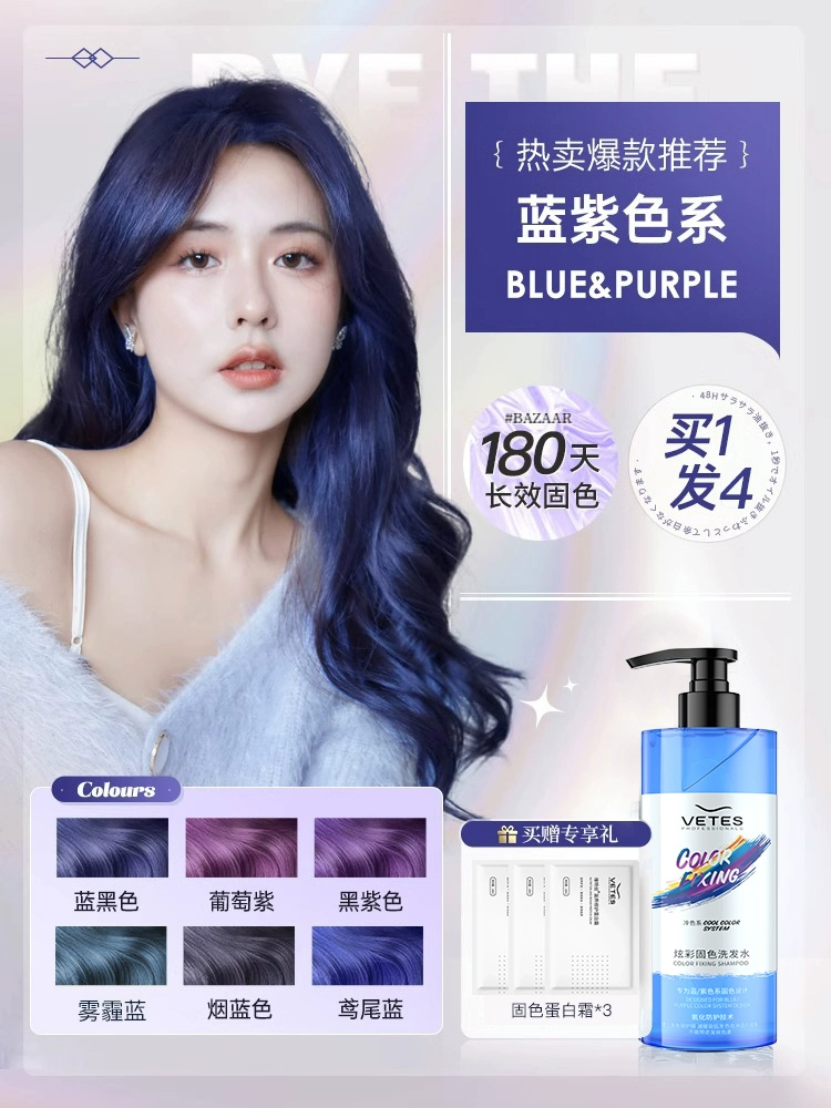 | nameOriginal | Color-fixing shampoo, color-locking, yellow-shifting, color-protection after dyeing, special non-complementary color removal to remove yellow, purple, gray, blue, red, pink |