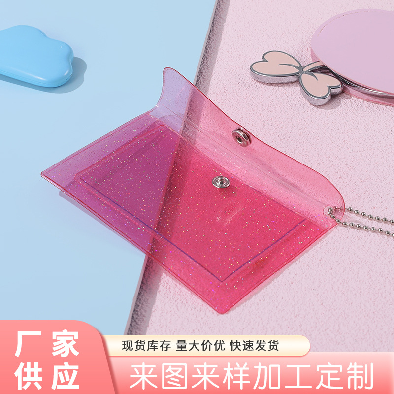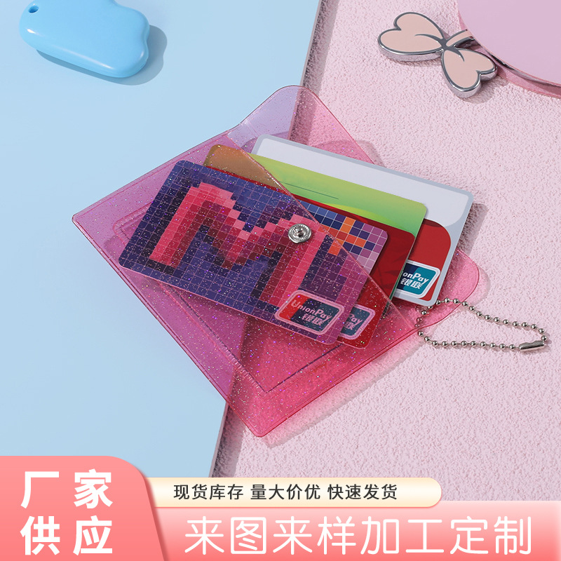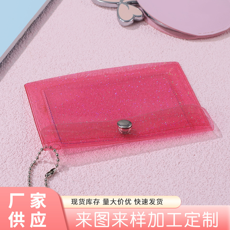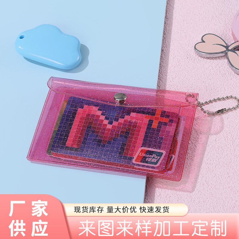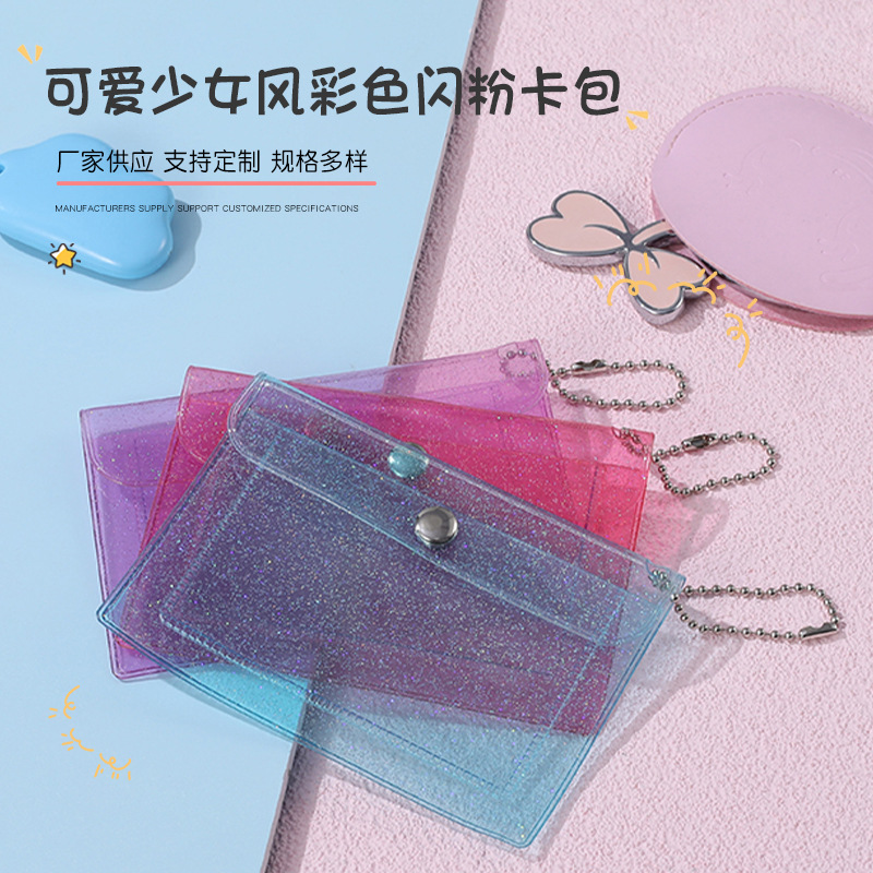 | nameOriginal | Color glitter push-button multi-layer card holder translucent PVC student card holder certificate storage card holder |