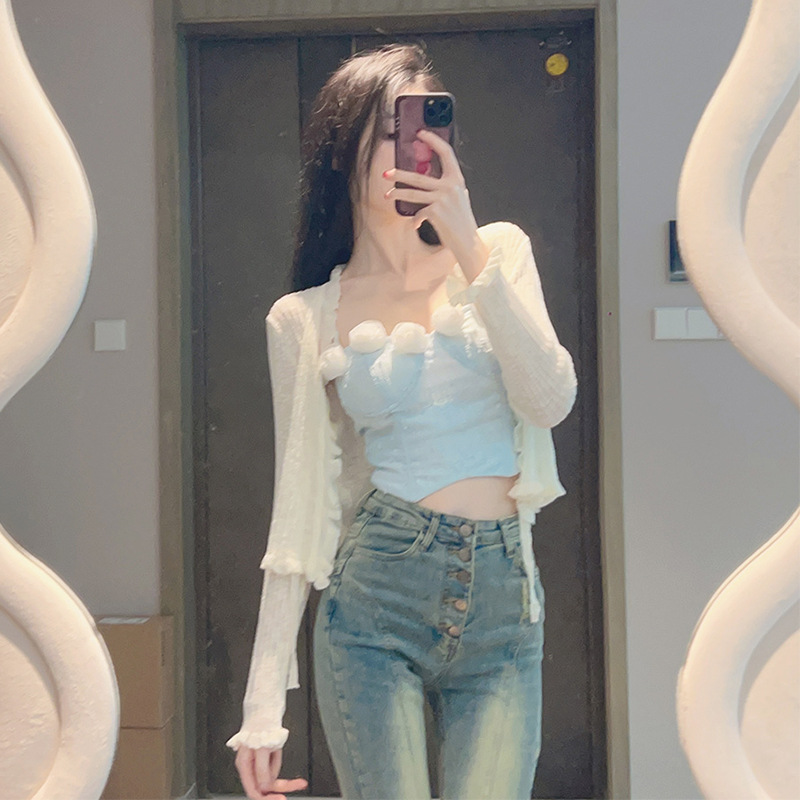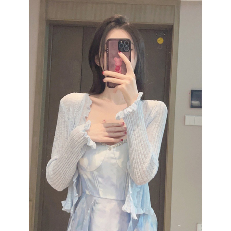 Color Ice Silk Sunscreen Knitted Cardigan Women's Summer Thin Air-conditioning Shirt Sling Outer Blouse Shawl Short Top