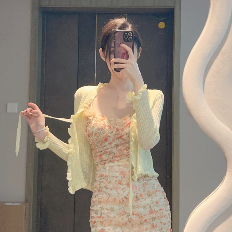Color Ice Silk Sunscreen Knitted Cardigan Women’s Summer Thin Air-conditioning Shirt Sling Outer Blouse Shawl Short Top