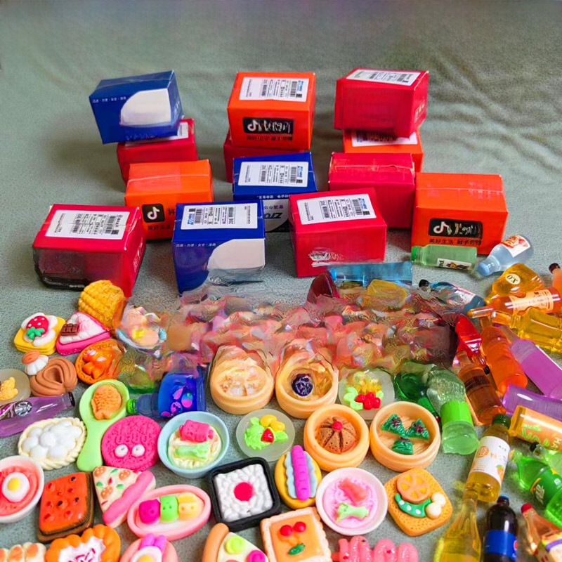 Color mini supermarket simulation bottle miniature convenience store resin food and play Express box wrapped doll machine small blind box