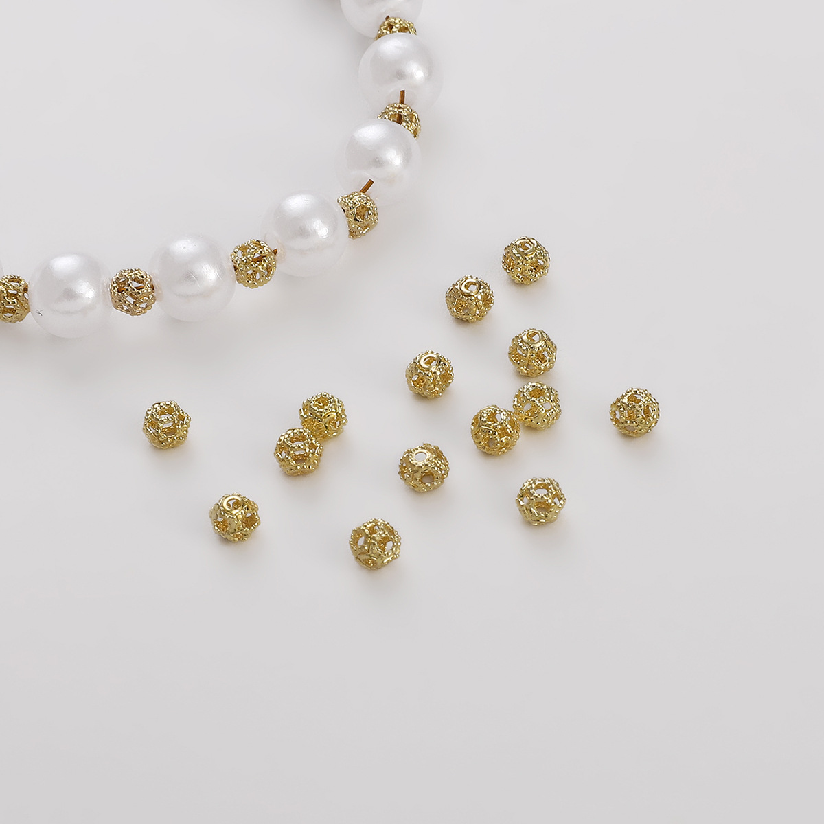 | nameOriginal | Color-preserving 14K gold-wrapped hollow round beads spacer beads small flower ball loose beads diy handmade pearl bracelet necklace jewelry accessories |