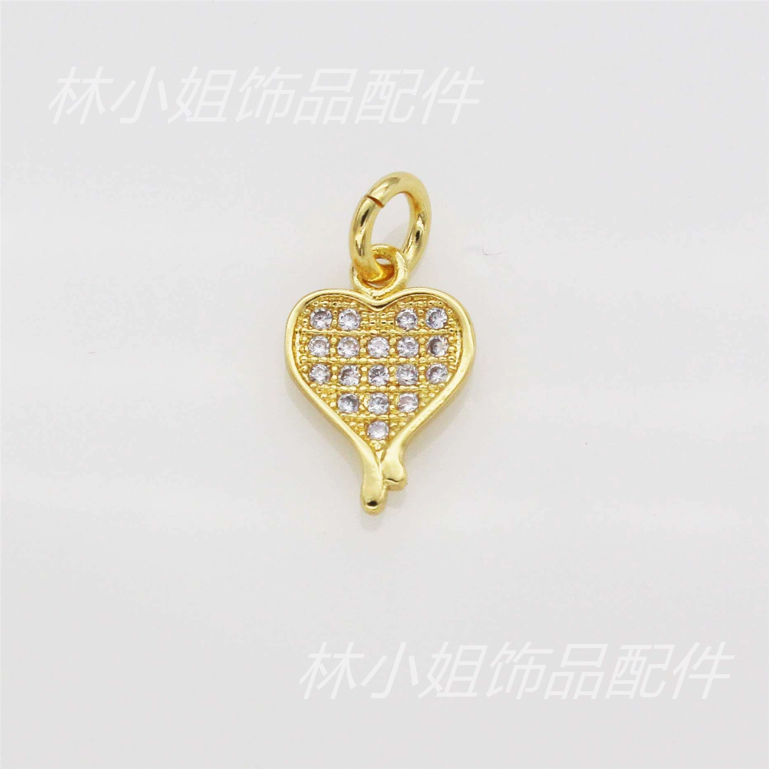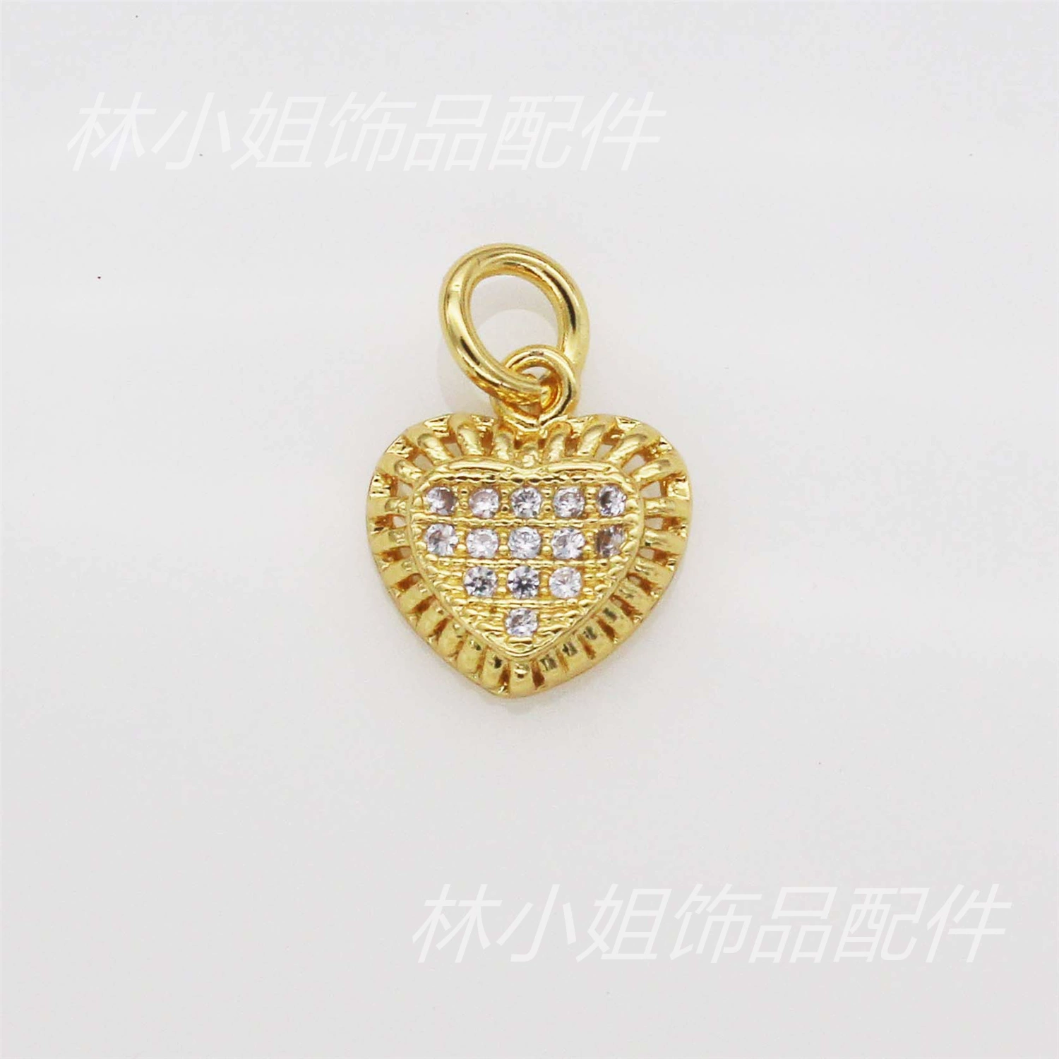 Color-preserving 18K gold-plated micro-zirconia heart-shaped love pendant pendant diy hand beaded bracelet accessories