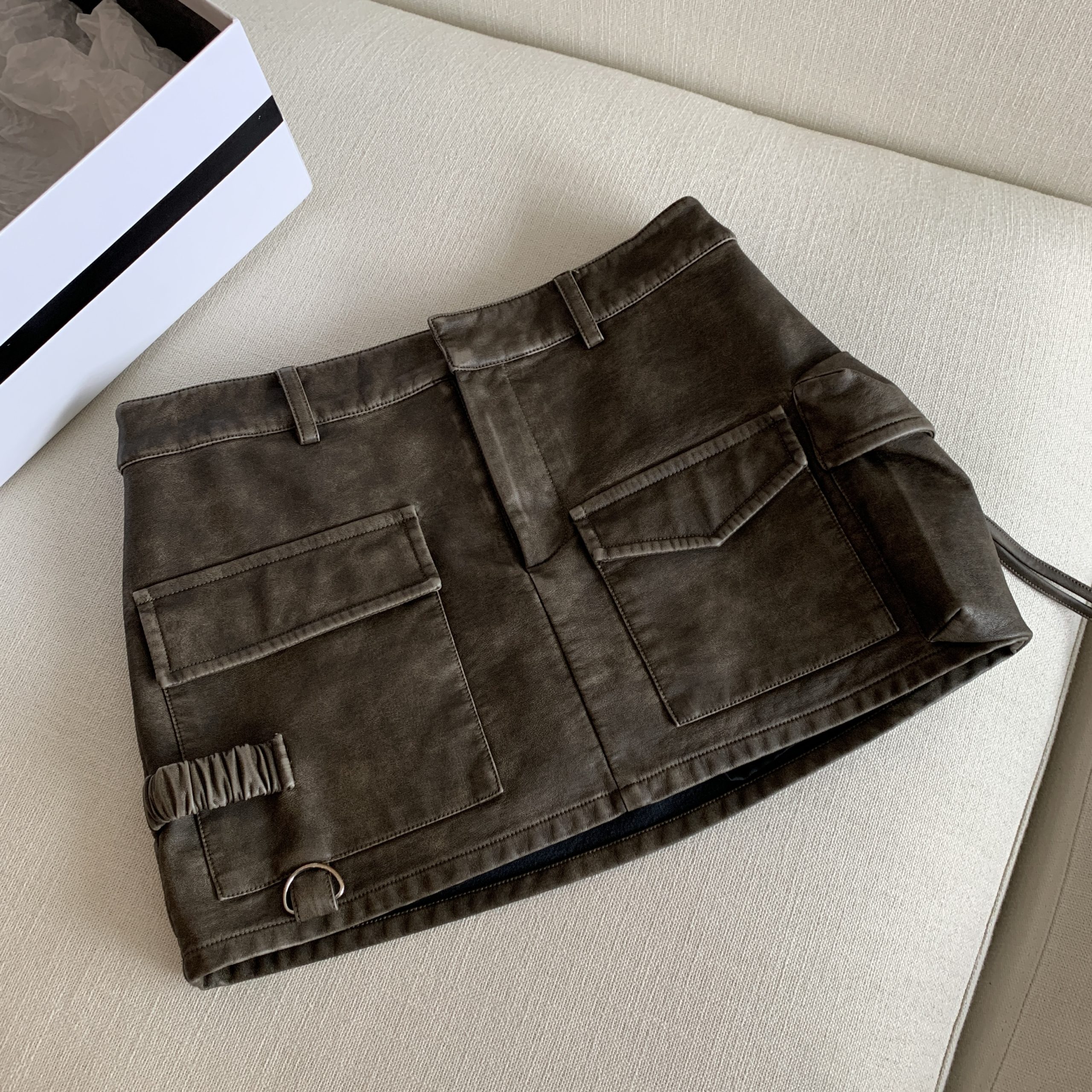 | nameOriginal | Color rubbed shabby retro leather skirt with safety pants |