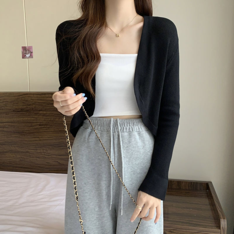 | nameOriginal | Color Short Sunscreen Knitted Cardigan Women's Summer New Long-sleeved High-waist Slim-fit Shoulder Blouse Shawl Top Trendy |