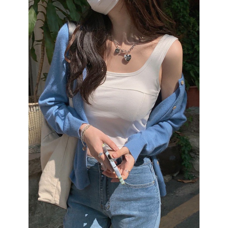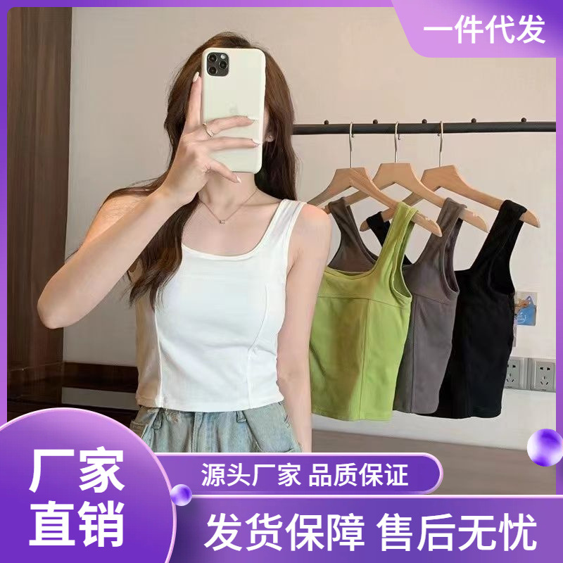 Color Square Wide Shoulder Strap Fixed Cup Vest Women Want Seamless Character Outer Wear Inner Wear Summer Slim Base