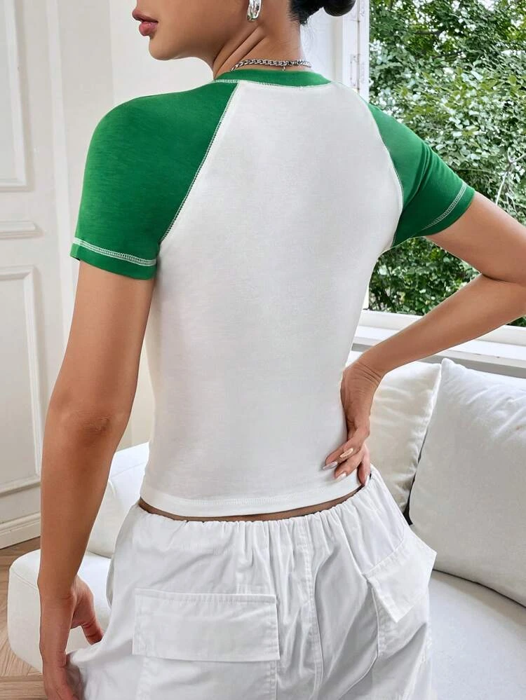 SHEIN EZwear Colorblock Raglan Sleeve Crop Tee