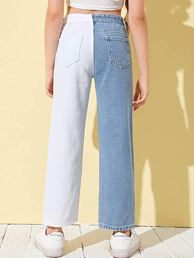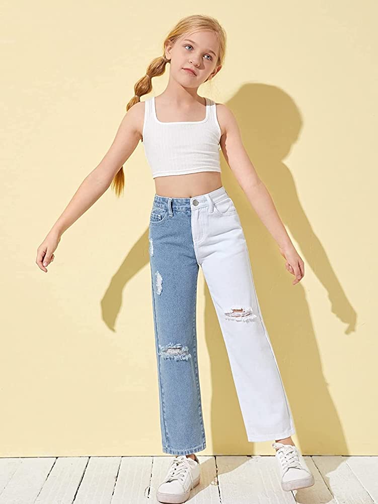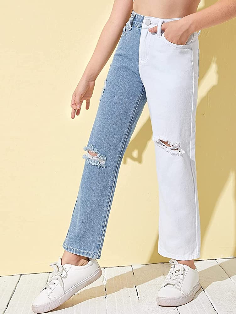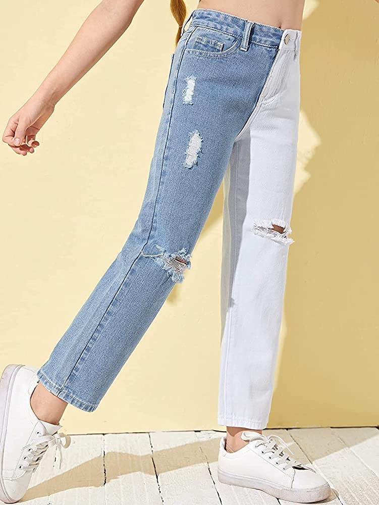 | nameOriginal | Floerns Girls Colorblock High Waist Ripped Jeans Destroyed Denim Pants |