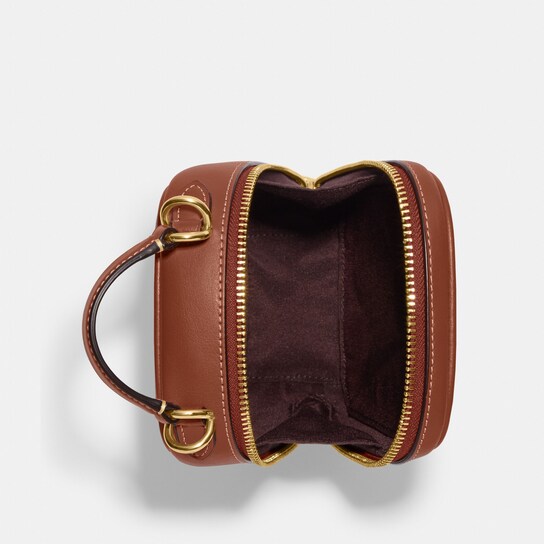This product features a combination of signature coated canvas and smooth leather, making it both stylish and durable. It includes four slots for credit cards and a zip closure with fabric lining to keep your belongings secure. The handle has a drop of 1 3/4 inches, and there is also a detachable strap with a 23-inch drop for versatile shoulder or crossbody wear. The dimensions of the product are 4 1/2 inches in length, 7 inches in height, and 2 1/4 inches in width. Its style number is CF368.