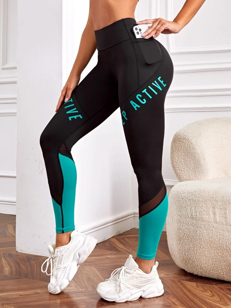 | nameOriginal | SHEIN Letter Graphic Mesh Insert Phone Pocket Colorblock Sports Leggings  |