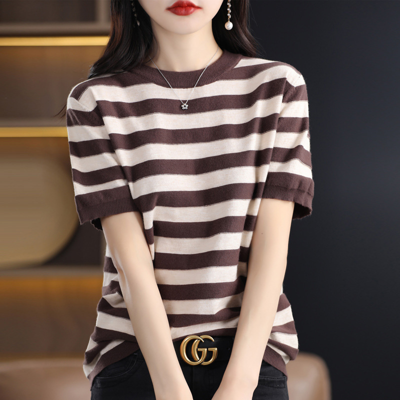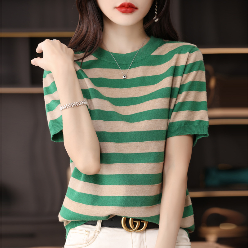 | nameOriginal | Colorblock Striped Short-Sleeved T-Shirt Women's New Modal Short-Sleeved Stylishness Base Round Neck Sweater Top for Summer |