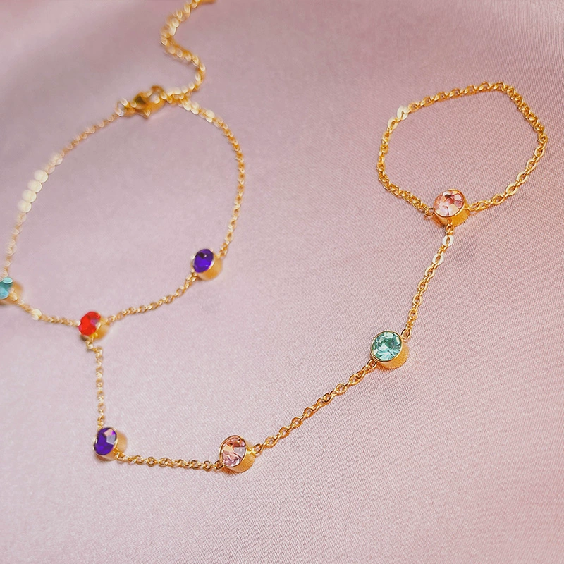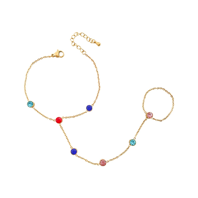 | nameOriginal | Colored diamond bracelet + ring, niche design, original internet celebrity jewelry, non-colliding, personalized hand jewelry, titanium steel, non-fading |