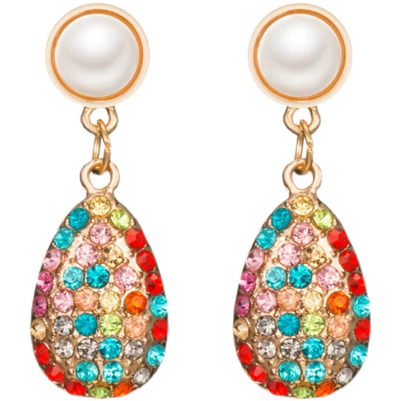 Colored water drop earrings palace retro style colorful water drop earrings ins exotic style