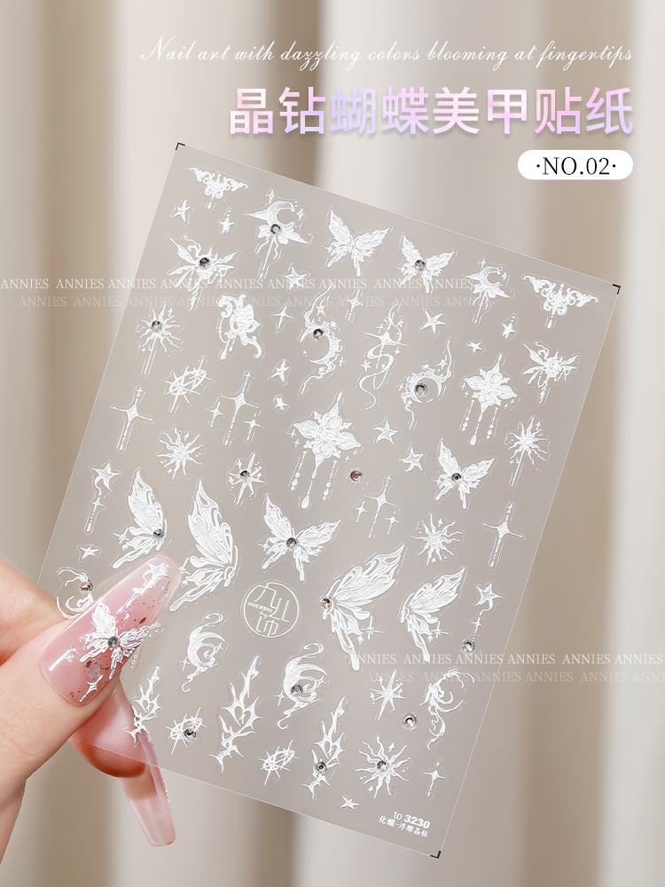 | nameOriginal | Colorful crystal diamond white gauze ice butterfly hollow manicure stickers |