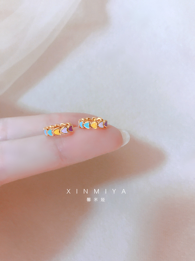 Colorful dripping glaze women's small heart-shaped earrings with popular design