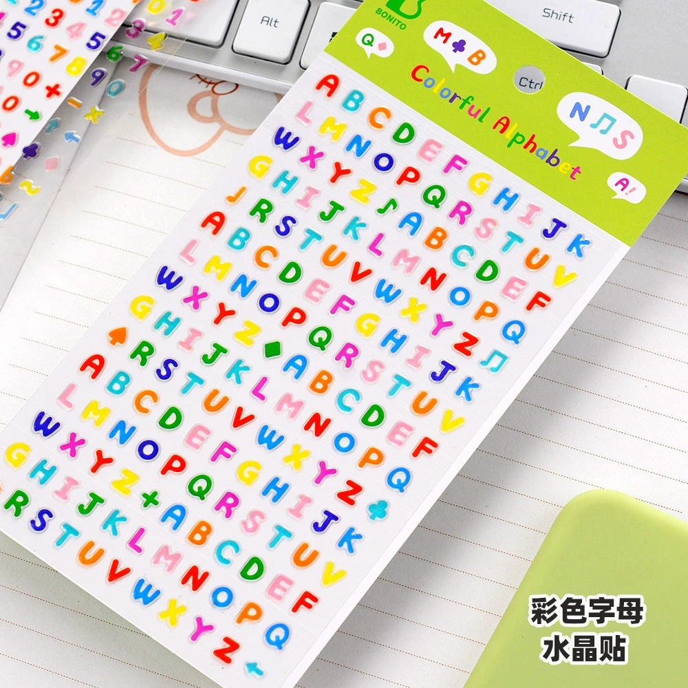| nameOriginal | Colorful English alphanumeric symbols three-dimensional candy transparent crystal sticker mobile phone case decoration DIY paste painting |