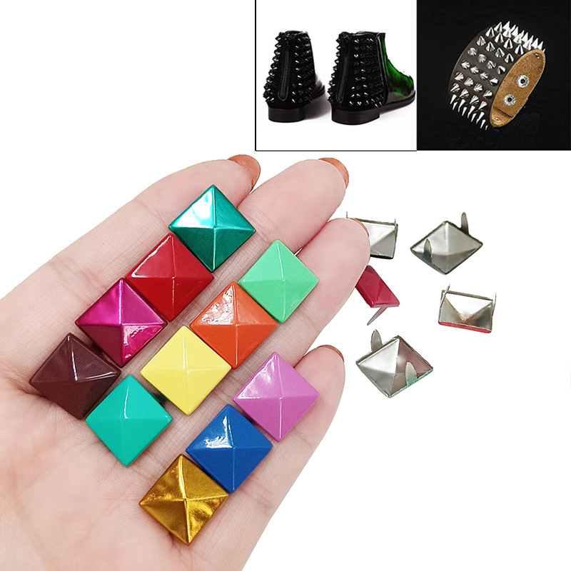 | nameOriginal | Colorful Iron Square rivet pyramid square claw buckle DIY clothing shoes bag accessories metal spray paint two claw square beads |