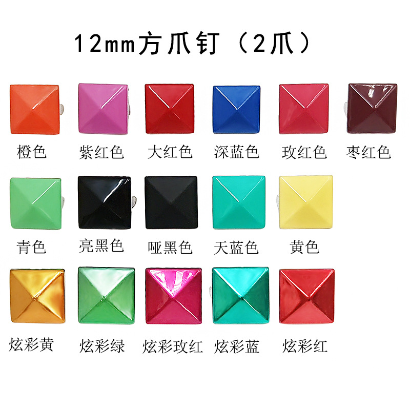| nameOriginal | Colorful Iron Square rivet pyramid square claw buckle DIY clothing shoes bag accessories metal spray paint two claw square beads |