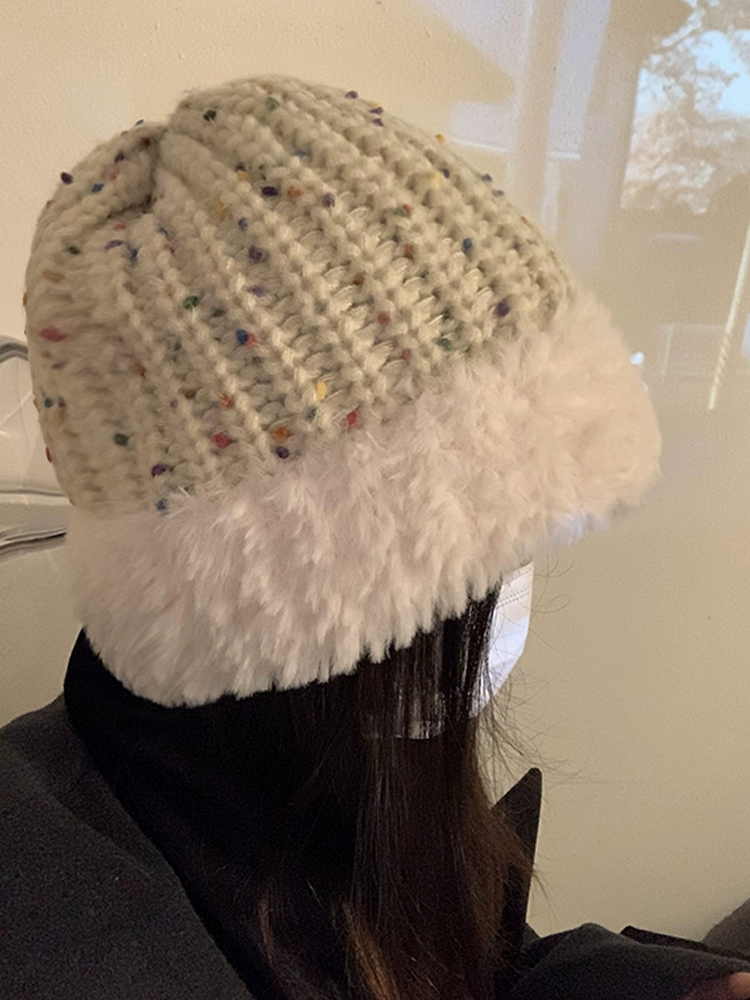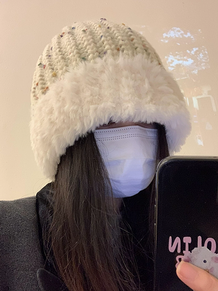| nameOriginal | Colorful knitted hat women's winter woolen hat large head circumference beige furry winter warm ear protection fisherman hat trendy |