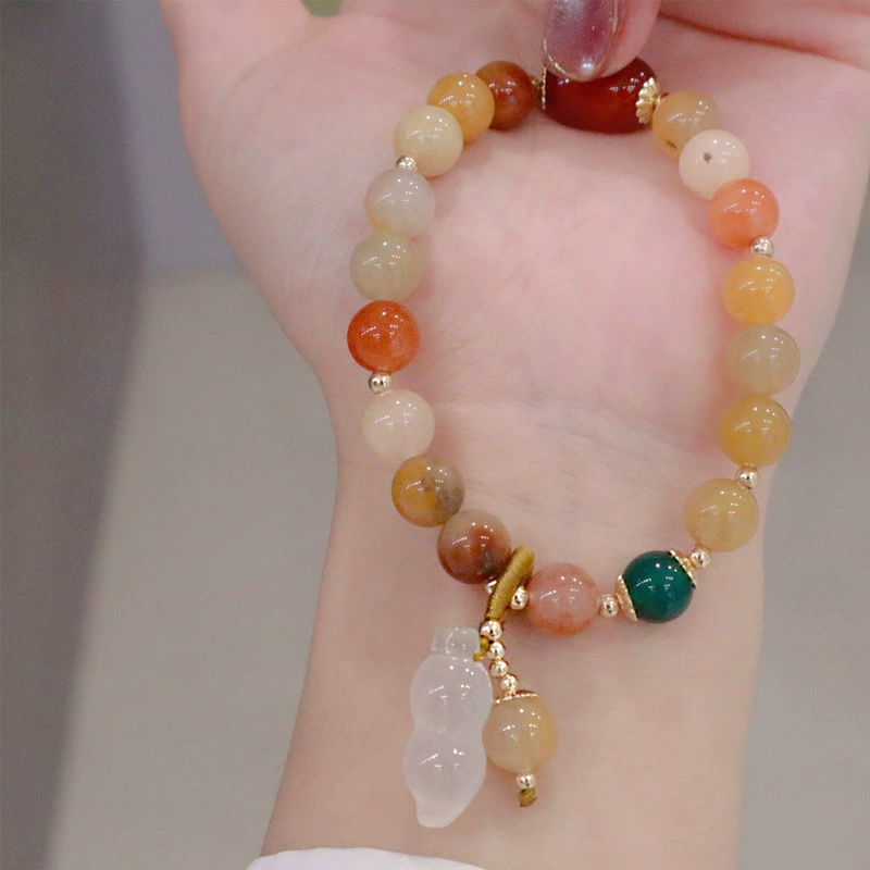 | nameOriginal | Colorful natural gold wire and jade gourd peanut bracelet female student best friend jewelry new Chinese style elastic bracelet |