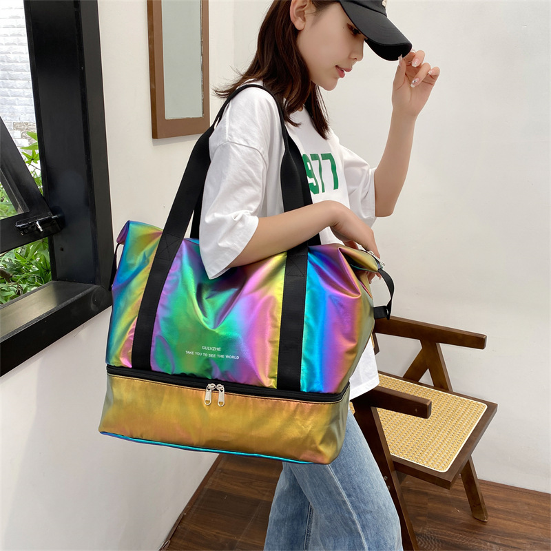 Colorful Pearlescent Fitness Bag Short-distance Travel Bag Men's and Women's Large Capacity Portable Sports Bag Multifunctional Duffel Bag
