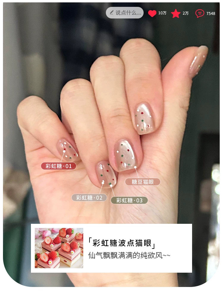 Colorful polka dot nail polish glue versatile glass beads cat eye